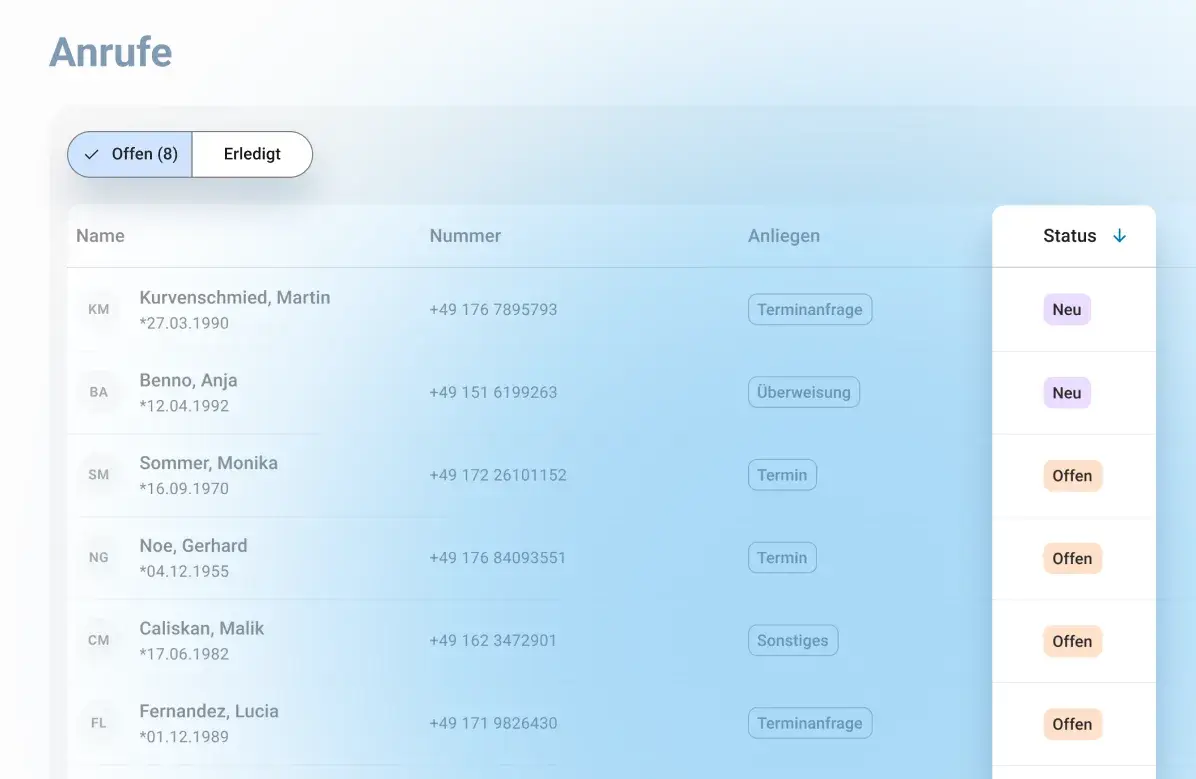 Ihr persönlicher Telefonassistent nimmt zuverlässig Anrufe entgegen und leitet sie gebündelt und sortiert an Ihr Praxisteam weiter. So haben Sie und Ihr Team mehr Zeit für Ihre Patientinnen und Patienten.
